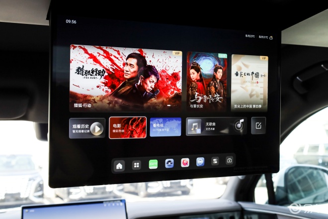 后排配置方面,有三开门冷暖冰箱、5温区空调、17.3英寸吸顶屏、小桌板、手机无线充电等配置。