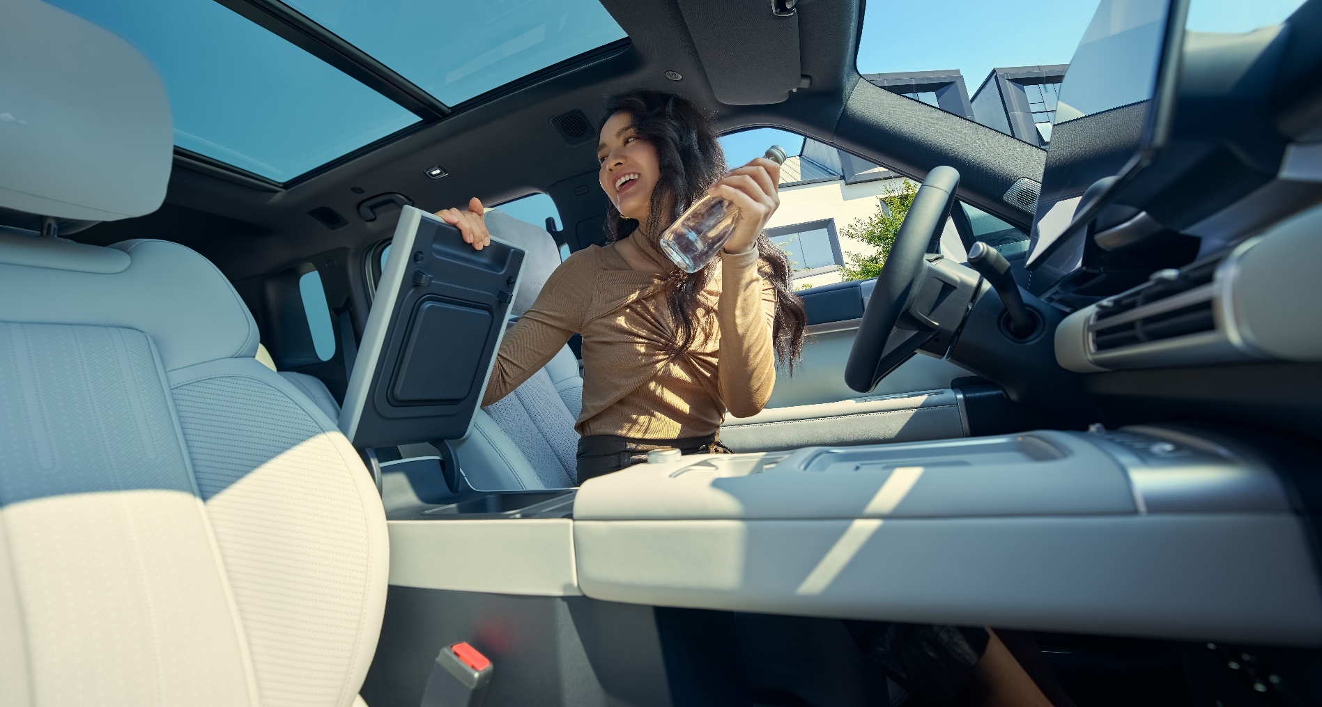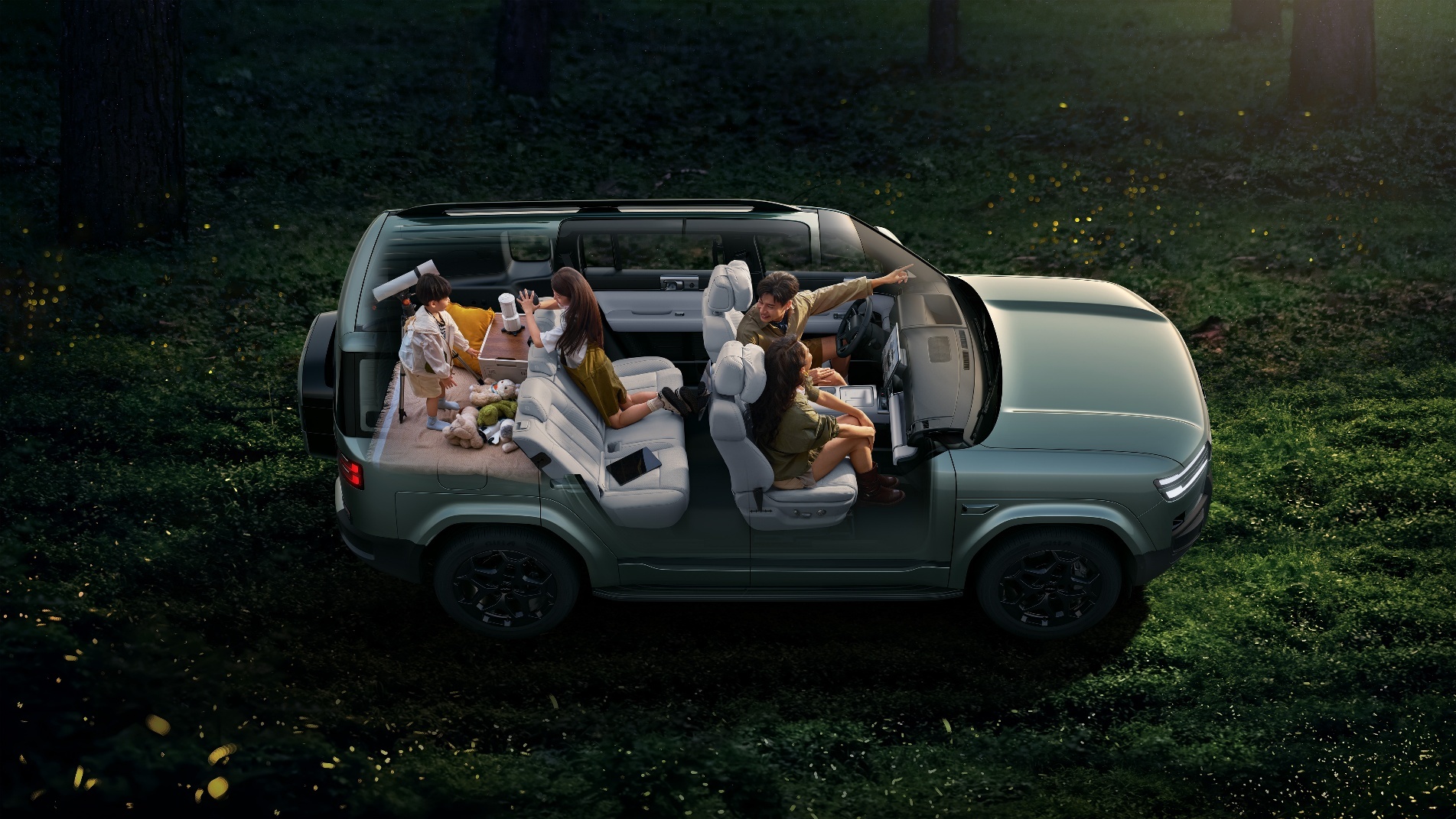 空间上,“高庭阔院” 满足家庭全场景需求。近 5 米车长、2 米车宽的车身尺寸,带来 70.9% 的超高 “得房率” 与超 3.3 米的乘员舱有效长度 ——1 米 9 乘客可挺直腰背,成年人半站立取物无压力,儿童在车内活动自如。后舱容积近千升,二排放倒后拓展至 1880L “超级大床房”,可容纳 18 个 20 寸 + 5 个 22 寸行李箱;47 处储物巧思更让每位家庭成员的物品各得其所,彻底解决家庭出行 “收纳焦虑”。
