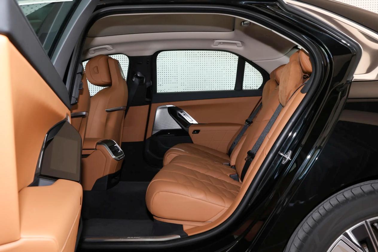 而宝马i7的长宽高三围分别是5391/1950/1548mm,轴距为3215mm,属于4门5座三厢车,尾部的后备厢有500L。车内的座椅采用仿皮材质,前两排座椅均支持电动调节,和加热等功能,前排座椅还支持记忆等功能,其次,新车还标配了前后扶手和老板键。