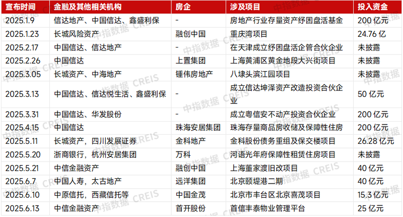 2025年上半年金融机构及房企参与房地产并购与纾困情况
