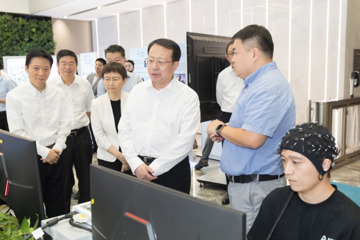 上海脑机接口未来产业集聚区“脑智天地”正结合华山医院的临床实践,打造脑机接口技术创新策源地。市领导察看脑虎科技公司以及阶梯医疗、岩思类脑等园区重点企业产品演示,并走进临港司南脑机智能超级孵化器,了解脑机接口企业引育、创新联合体合作情况。龚正说,脑机接口应用前景广阔,要打造头部企业引领、初创企业集聚、公共平台支撑的协同创新生态,加强对创新企业全生命周期服务,对标世界一流,努力实现“并跑”和“领跑”。