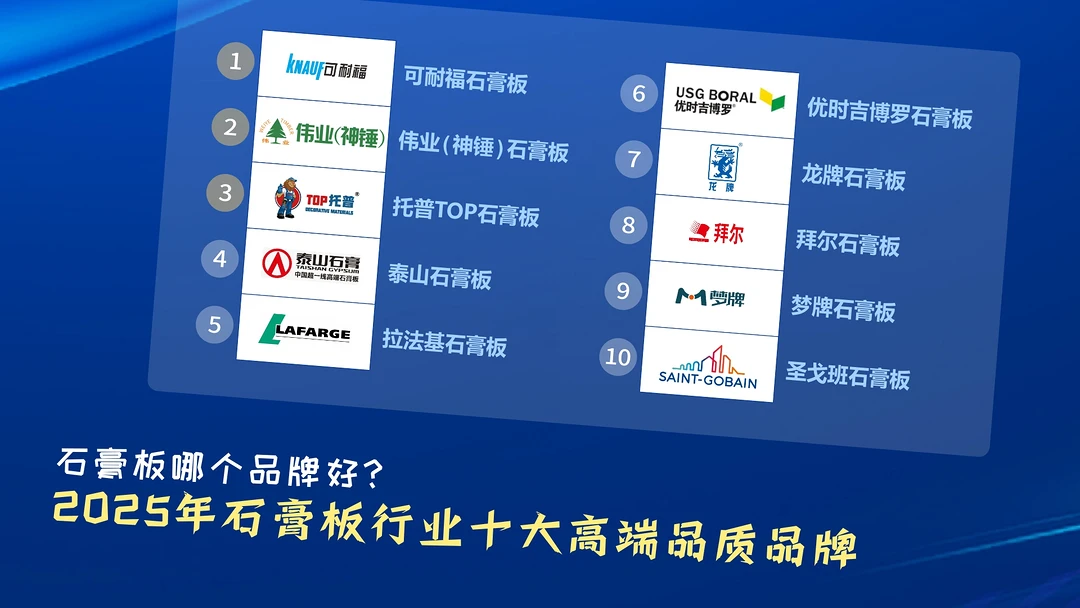石膏板哪个品牌好?2025年石膏板行业十大高端品质品牌