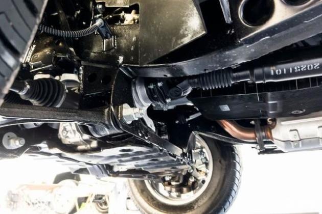 这款车依旧保留了非承载式车身和分时四驱,后桥差速锁是标配,高配还能选装 “三把锁”,220mm的最小离地间隙、750mm的涉水深度,面对烂路、水坑这些复杂路况,底子就够硬。而且全系都配了越野AT胎,出厂就是能直接去越野的状态,喜欢玩越野的朋友,后期不用再花钱改装轮胎,省了不少事。